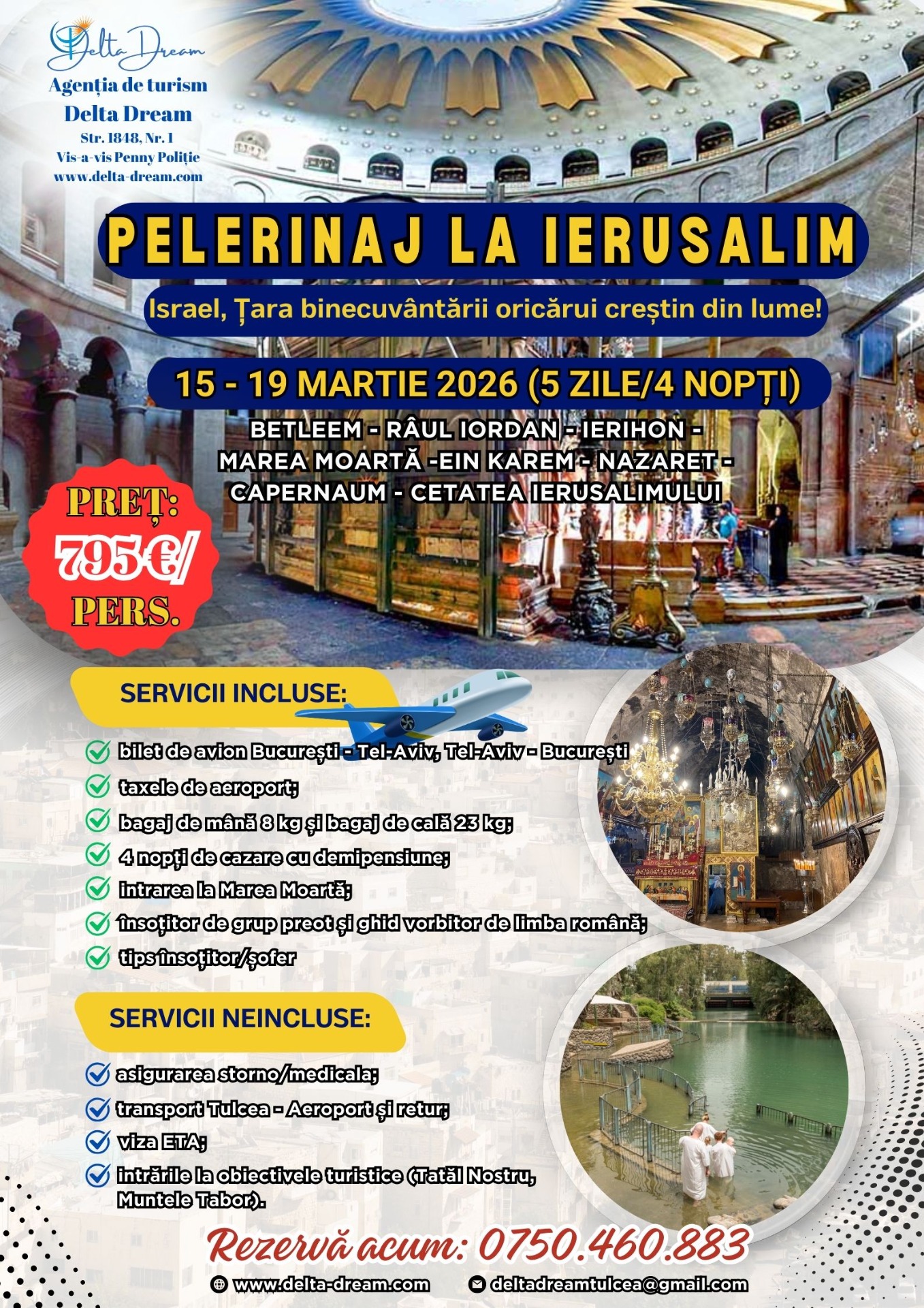 * AGENȚIA DELTA DREAM are în vedere și realizarea de trasee personalizate la solicitarea coordonatorilor grupurilor de turiști/pelerini.